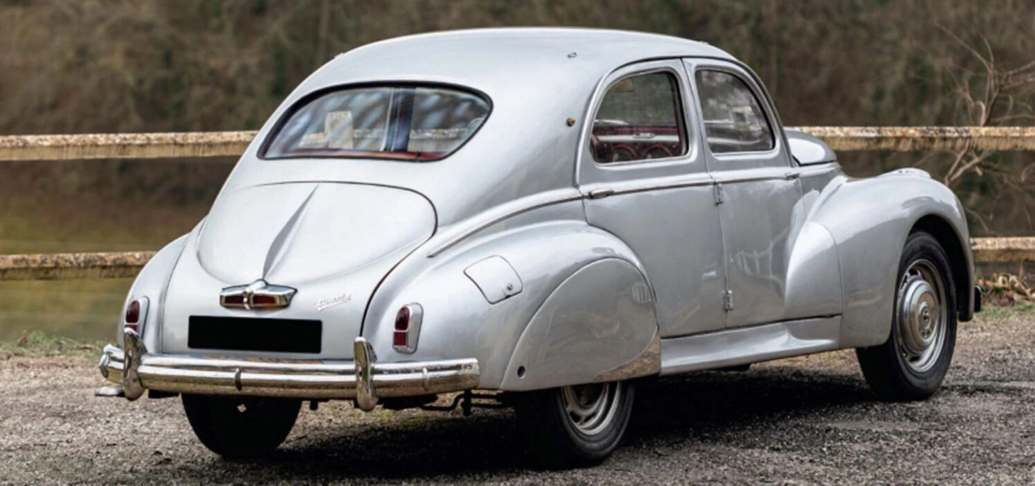 A negyedik autó a legendás Émile Darl’Mat műhelyéből származik. A párizsi mester a háború után átdolgozta a széria 203-ast: hét centivel alacsonyabban húzta meg a tetővonalat, nem kevesebb, mint 14 centivel lejjebb ültette a karosszériát, és új, kecses vonalú csomagtartófedelet rajzolt. Mindezt megkoronázta egy amerikai stílusú hűtőráccsal és a részben burkolt hátsó kerekekkel. A motorháztető alatt Nardi ikerkarburátoros, 1.5 literes blokk dolgozik 90 lóerővel – azaz több mint kétszer annyival, mint az eredeti modellé. Belül vörös bőr, ritka „Taupin” műszerfal fogad minket, valamint az az érzés, hogy ez nem is egy régi 203-as, hanem egy, a korát jócskán megelőző luxus sportlimuzin. Az árverési becslés 60 és 80 ezer euró közé tette az értékét.